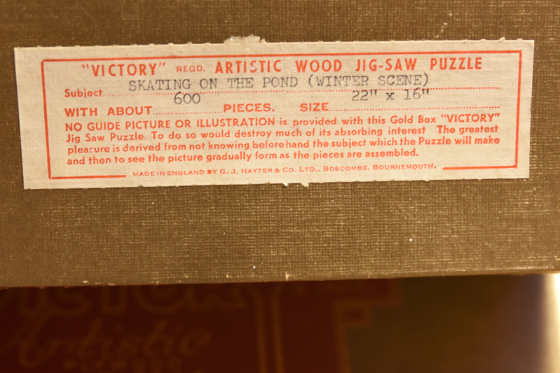I Hussens familj köptes engelska träpussel av märket Victory Artistic Jig-saw Puzzle, inköpta - ett nytt varje jul - på NK i Stockholm. Dessa finns kvar och cirkulerar nu mellan syskonen. Vi har just fått en ny laddning om tre askar och själva lämnat två vidare.