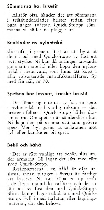 Det slår mig när jag tittar i den gamla bruksanvisningen, hur mycket man lappade och lagade förr. Omständigheterna var små och att slänga och köpa nytt kom inte på fråga. Kanske borde vi börja så igen, om vi ska tänka oss att vara miljövänliga och resurssnåla.