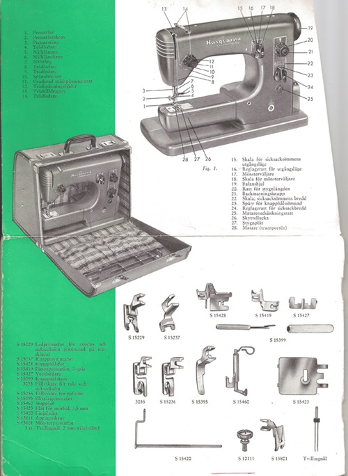Åh, helt plötsligt förflyttades jag tillbaka till 50-talets slut och 60-talets början. Min mamma hade en exakt likadan symaskin som jag tjatade mig till att få använda. (Mor var förstås rädd att jag skulle göra illa mig i min sy-iver. En gång sydde jag igenom skinnet längst ut på pekfingret. Sedan tog jag det lugnare.)